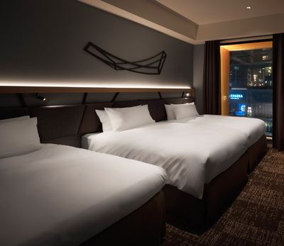 1. 호텔 한큐 리스파이어 오사카 (Hotel Hankyu RESPIRE OSAKA) JR오사카역 3층에서 아트리움광장 경유, 아트리움 광장 2층(중앙북쪽출구)과 직결된 4성급 호텔4명까지 이용가능한 쿼드러플룸이 있