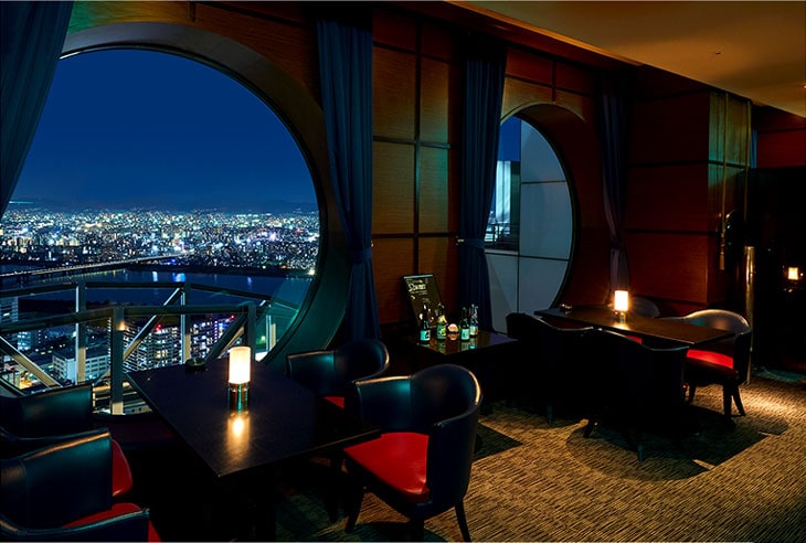 오사카의 야경을 바라보며 고급스러운 식사를 즐길 수 있습니다.